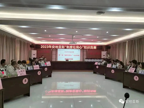 陽春三月、風和日麗。為推動公司制度建設(shè)的整體規(guī)劃、鞏固、提升全體員工的綜合素質(zhì),以賽促學、以學促干,形成公司自主學習的良好氛圍。經(jīng)公司行政人事中心精心策劃,2023年3月10日下午2點,在經(jīng)開區(qū)黨群活動中心隆重舉行了2023年安地亞斯第一屆“制度在我心”知識競賽。此次競賽內(nèi)容涵蓋企業(yè)文化、行政制度、產(chǎn)品知識、安全知識、品質(zhì)知識、操作過程等全方面內(nèi)容。經(jīng)過各部門嚴格選拔,共有9支隊伍45人參賽。