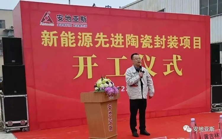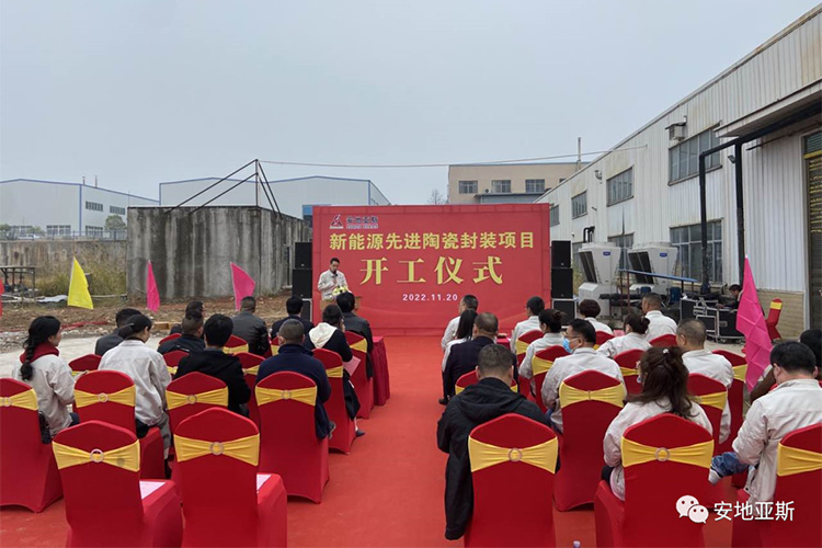 2022年11月20日早上,萬(wàn)里無(wú)云,溫暖的陽(yáng)光灑滿大地,公司新能源先進(jìn)陶瓷封裝項(xiàng)目工地上彩旗飄飄、火紅的氣球隨風(fēng)飄揚(yáng)。主席臺(tái)上“新能源先進(jìn)陶瓷封裝項(xiàng)目開(kāi)工儀式”幾個(gè)大字分外醒目,今天是安地人高興的日子,我們將在這里舉行新廠房建設(shè)開(kāi)工儀式。
